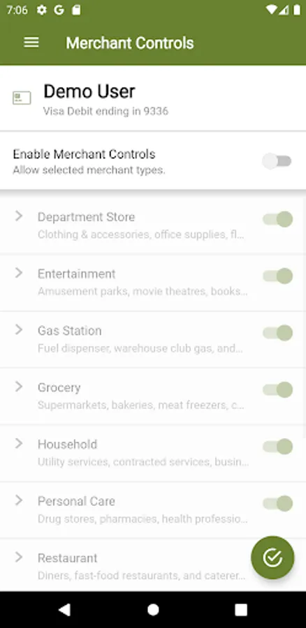 CardNav enables you to set controls regarding the transaction types, geographic rules, and the merchant types where your card can be used.