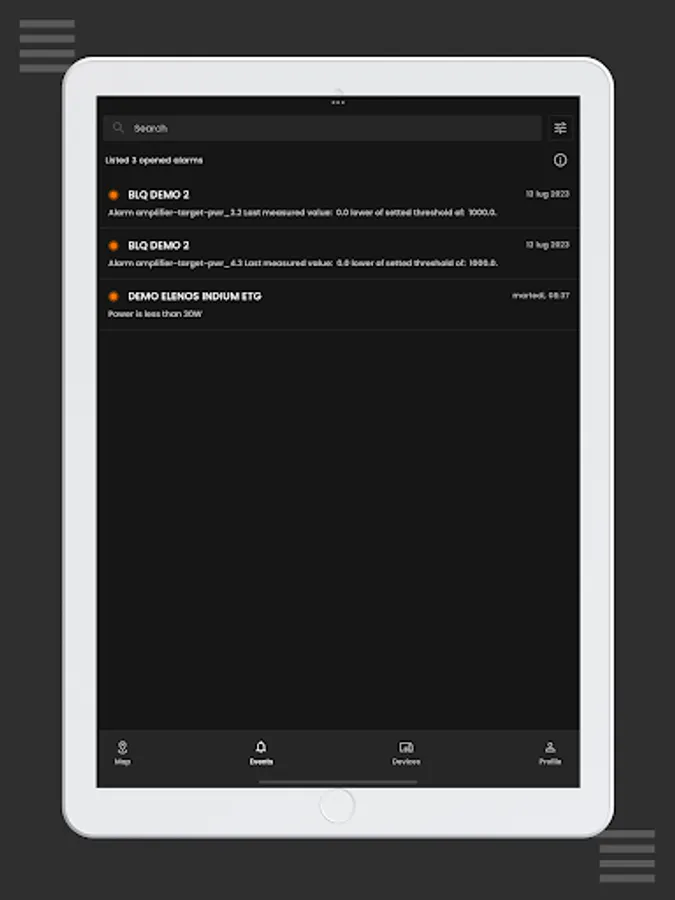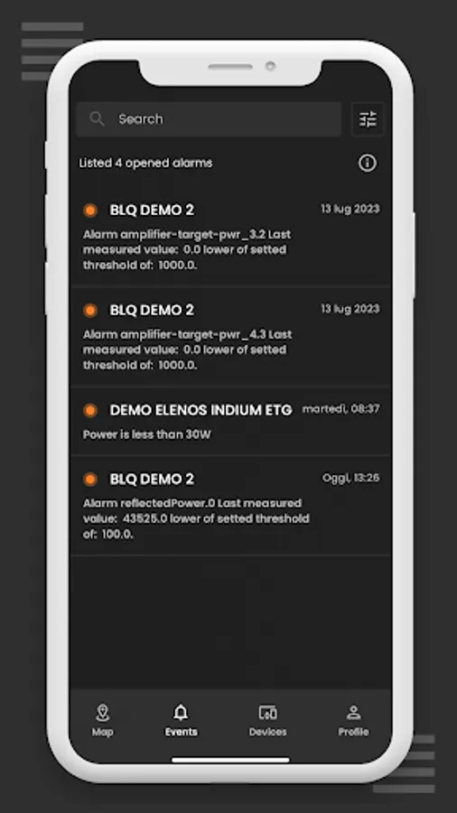 - alarm notifications.