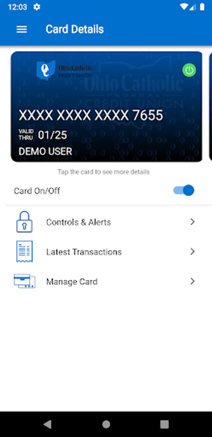 "Securely control your Ohio Catholic FCU debit and credit cards on your smartphone.