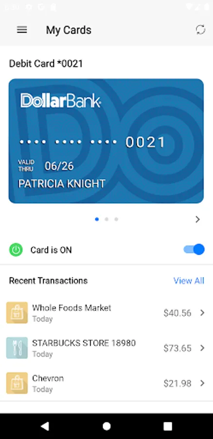 Keep your Dollar Bank credit and debit cards safe with Dollar Bank Card Control. With this app, you can easily set up alerts and controls to conveniently manage and protect your cards.