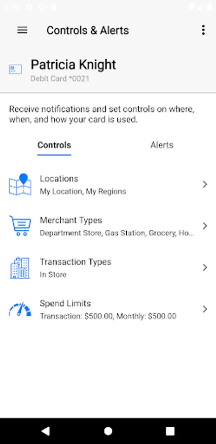 • Create spending limits to decline transactions above your set thresholds.