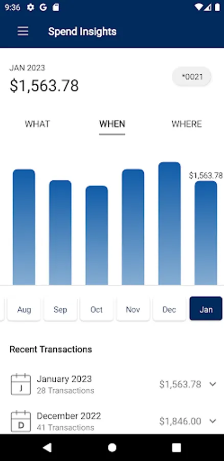 Get rich data about your card purchases, with Spend Insights. Sort spend insights by merchant category, location, and monthly trends.