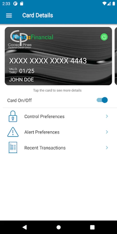 Helps protect your debit and credit cards by sending transaction alerts and giving you the ability to define when, where and how your cards are used. Simply download the app to your smartphone, then customize your alert preferences and usage settings to monitor and manage your cards.