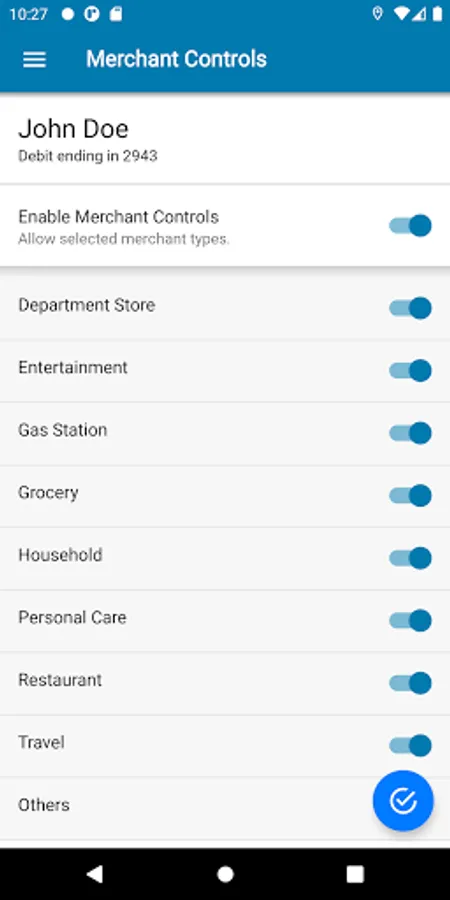 Set spending limits to decline transactions above your thresholds. Monitor activity by category such as gas stations and restaurants, and by type: in-store purchases, e-commerce transactions and ATM transactions.