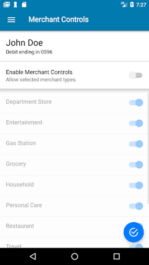 Spending limits can be established to allow transactions up to a certain dollar value and decline transactions when amounts exceed your defined thresholds. Transaction can be monitored and managed for specific merchant categories such as gas stations, department stores, restaurants, entertainment, travel and groceries. And your transaction can also be monitored for specific transaction types in store purchases, e-commerce transactions, mail/phone orders and ATM transactions.
