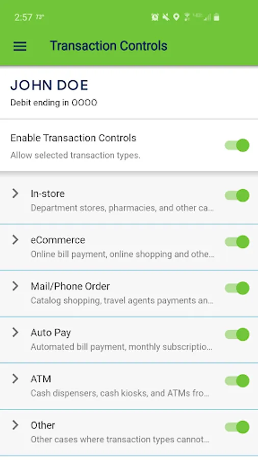 • With CardNav, you’ll get a real-time alert when your card is used outside of your preferences, giving you the power to deny the transaction or turn your card off.