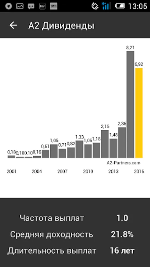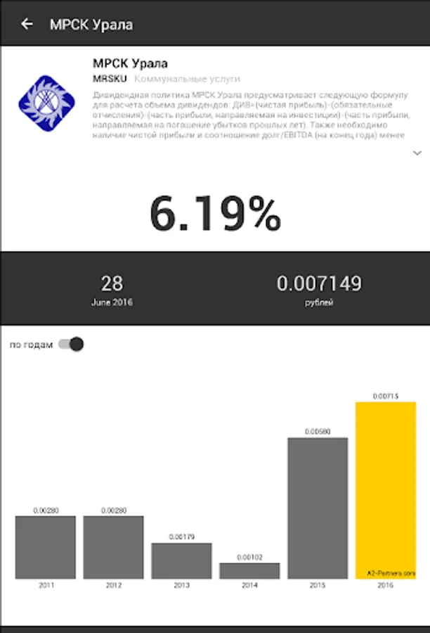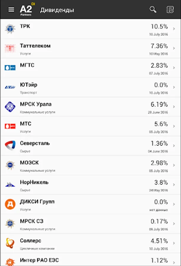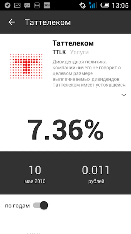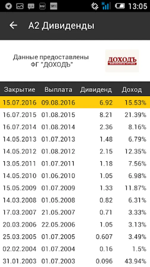 Thanks to our partners managed to create an application that allows you to obtain information about dividends on the Russian market. In addition, this information can be used when you have no Internet! It was rare for a financial application has provided such an opportunity. But we dividends, but because we can afford it.