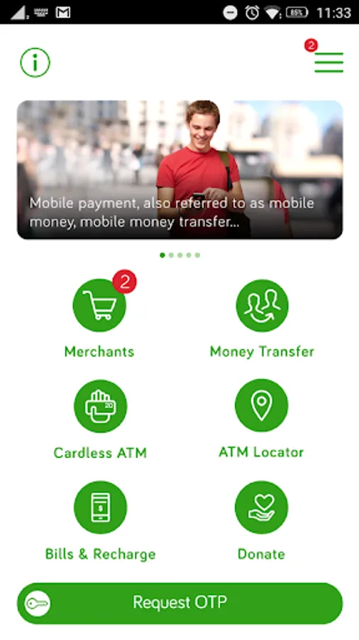 -Allows you to request a One-Time-Password (OTP) via the application itself or via SMS