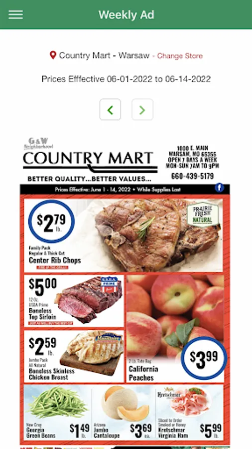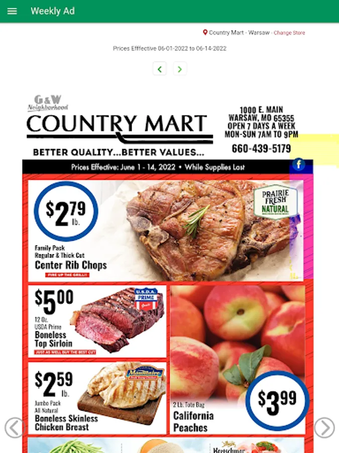 Country Mart located in Warsaw Missouri is your local grocery store.