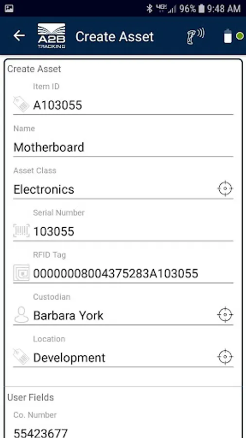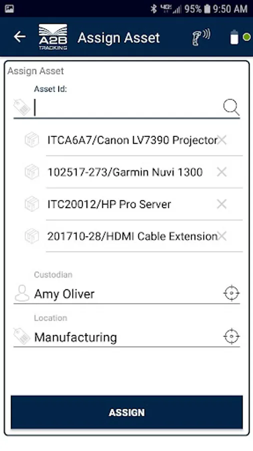 A2B RFID Tracker app connects your Android device to the A2B Tracking asset management platform in the cloud for real-time asset tracking. Key functions include: Search and Locate Assets with Pro-Locate, Floor to Record Inventories, Inventory Counting by Part, Check In and Check Out, Assignments and Put Away to Locations, Asset Commissioning, Groupings and more.