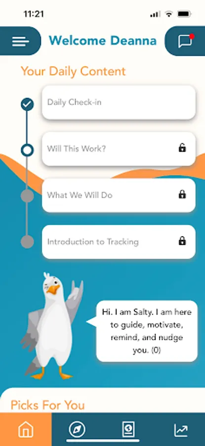 Welcome to Salty, an app-based support program designed for people living with chronic pain.