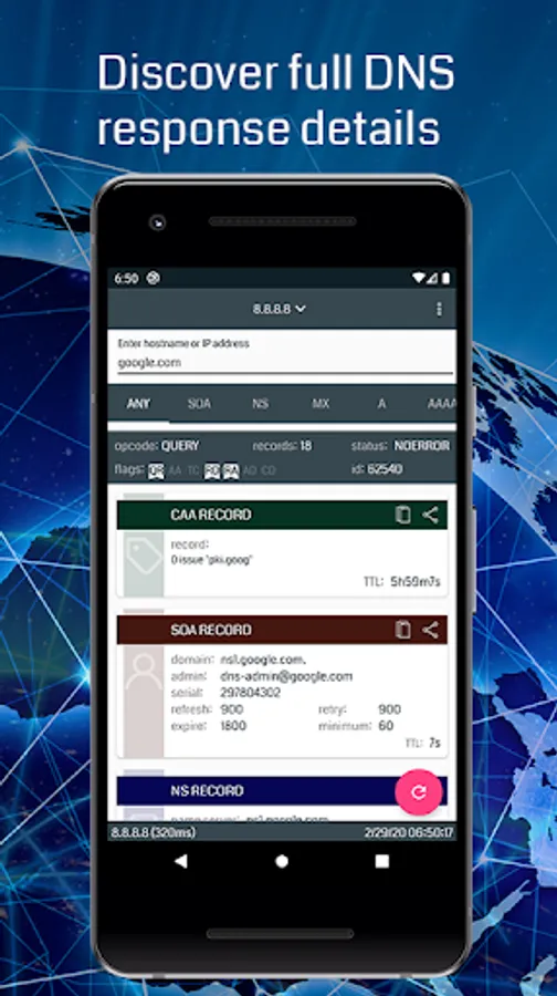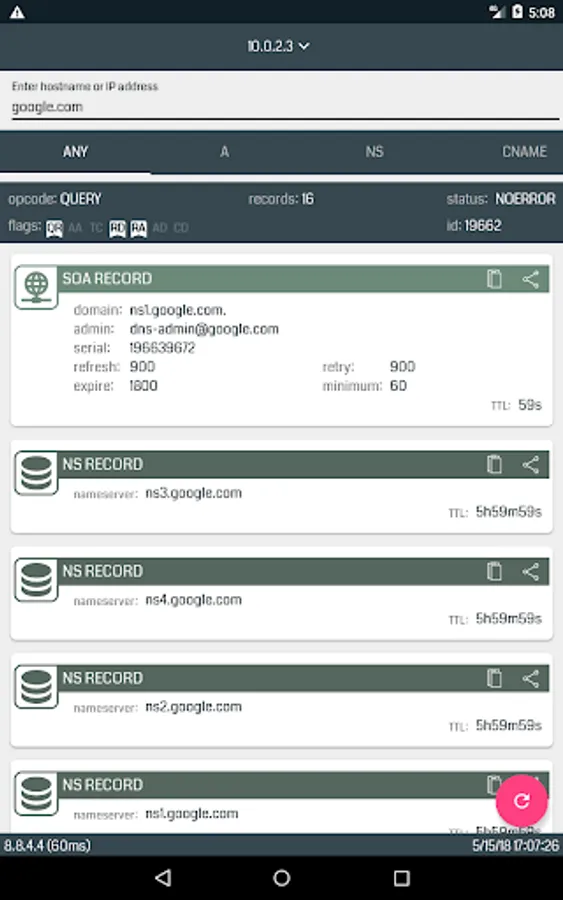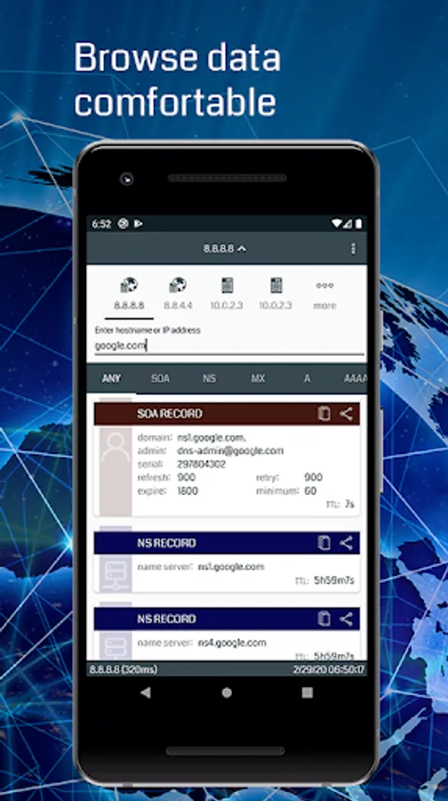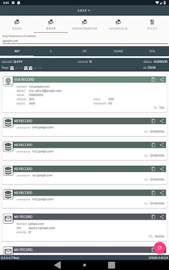 DNSDig saves last queries so you can use autocomplete feature while entering host name. DNSDig also supports reverse DNS queries.