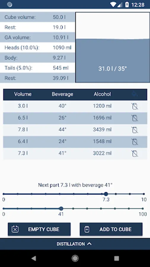 2. The total content of absolute alcohol in the cube, taking into account filling it with individual portions, free space in the cube to account for spraying, the volume of the head and tail fractions, the potential volume of absolute alcohol.