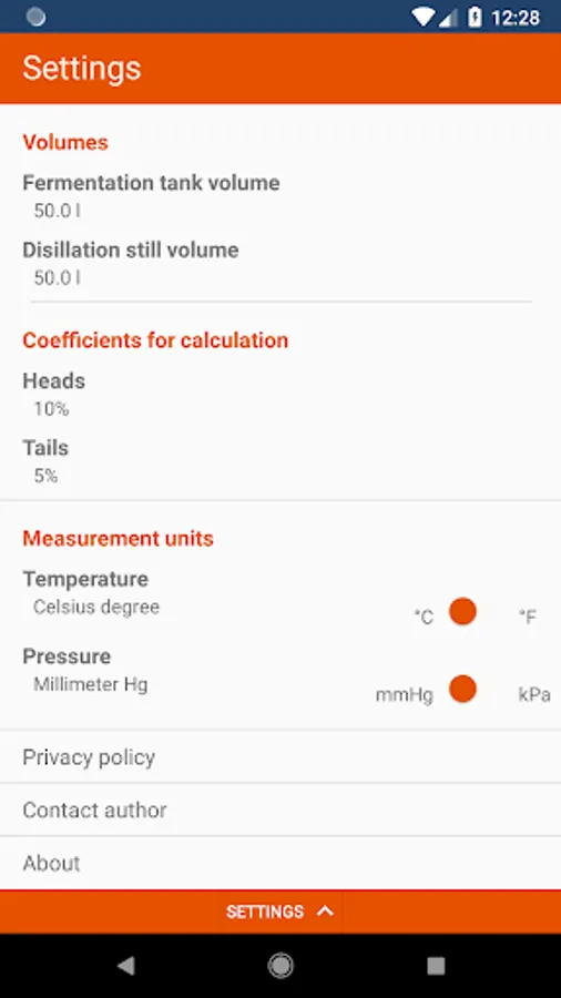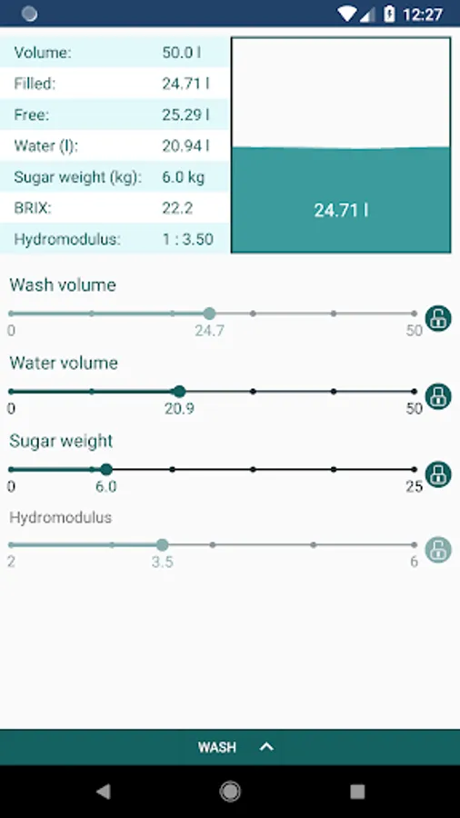 1. Parameters of sugar home brew - sugar content, water, hydronic module, initial density, volume, taking into account sugar dissolution, filling capacity, taking into account foaming.