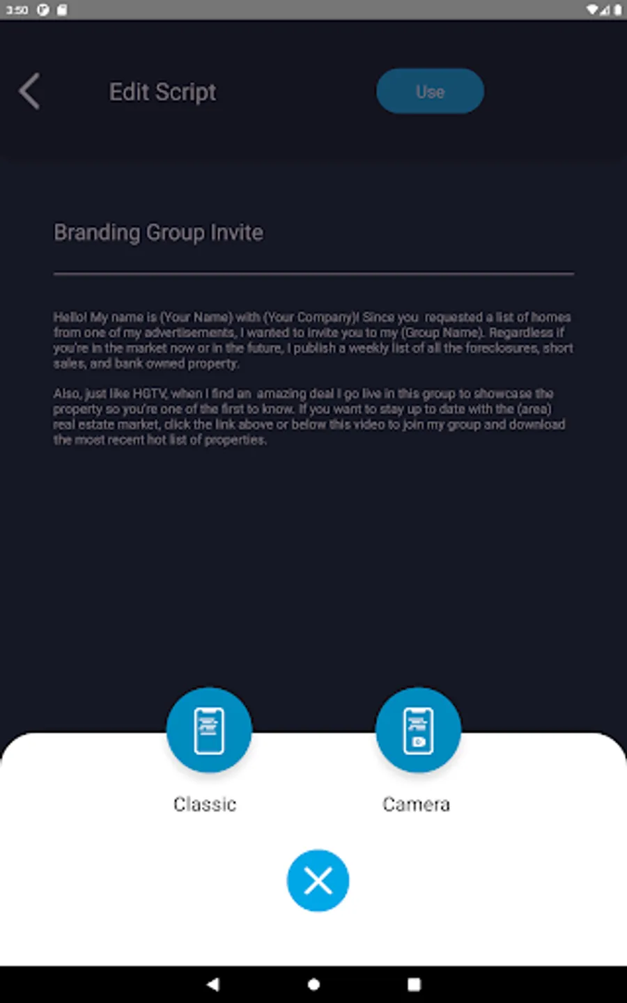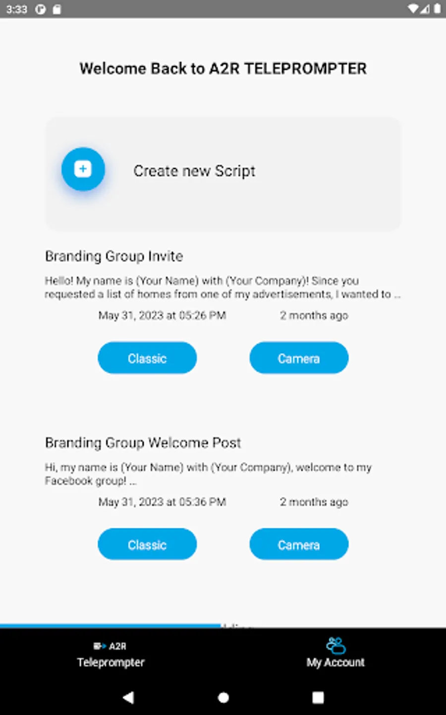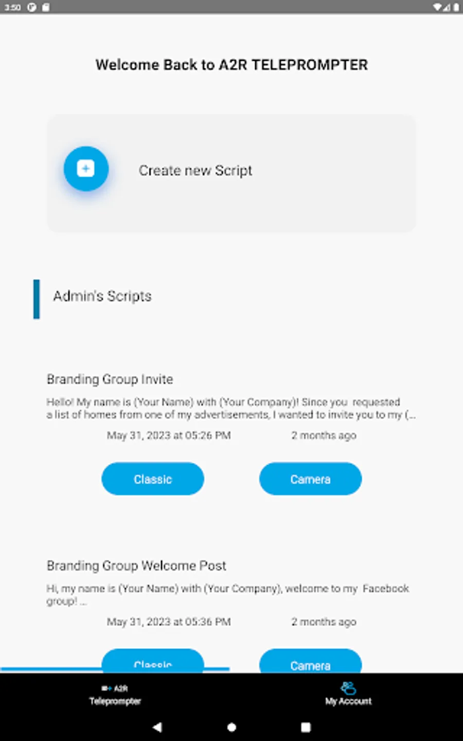 Use this teleprompter to record your videos with ease. Comes preloaded with scripts with the ability to add your own. Just look at your phone camera and read, it's that easy.