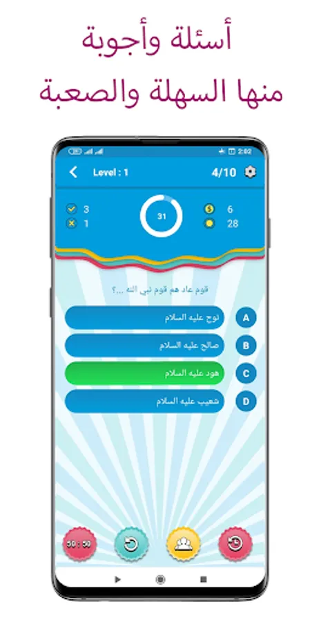 A general cultural questions and answers game without the net General Information: It is a game that includes a large number of general, religious and political questions. Where a general cultural questions and answers game without the net includes general information many stages, each stage has 10 questions and the player must exceed at least 80% to move to the next stage, depending on your general culture and means of assistance.