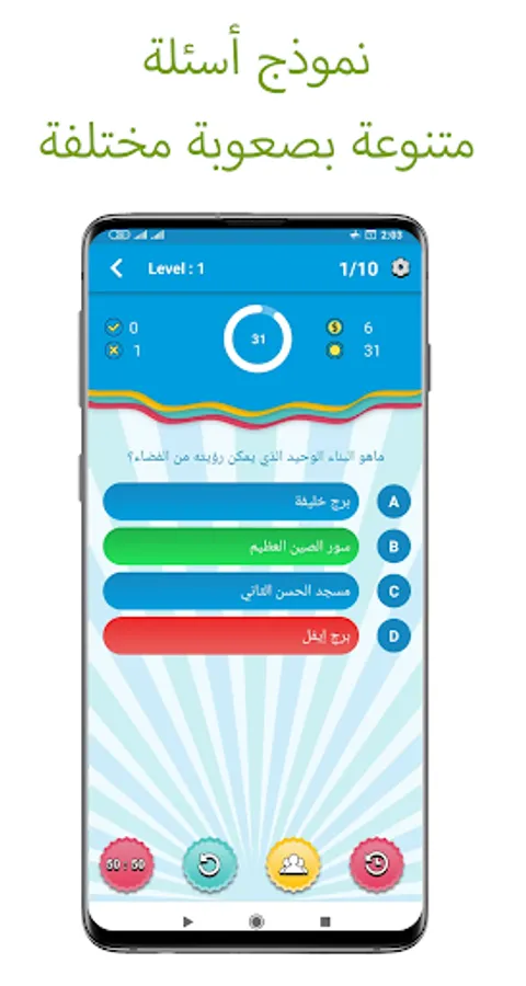 It is a general and cultural information game that is fun and entertaining in various fields, and it is a game that is similar to an application and a game of benefit and entertainment to raise the level of knowledge balance, where a question and four answers are randomly asked, i.e. a stroke of luck, and the player must find the correct answer in the sense of the hidden puzzle, as the These questions are about general culture