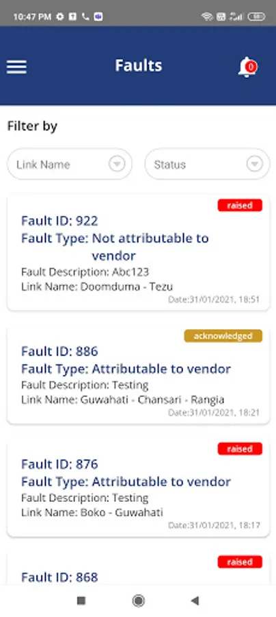 The app is designed for quick fault resolution, effective fault reporting of faults there by enabling the region to operate without least network down time.