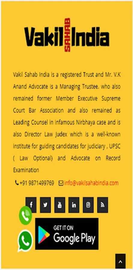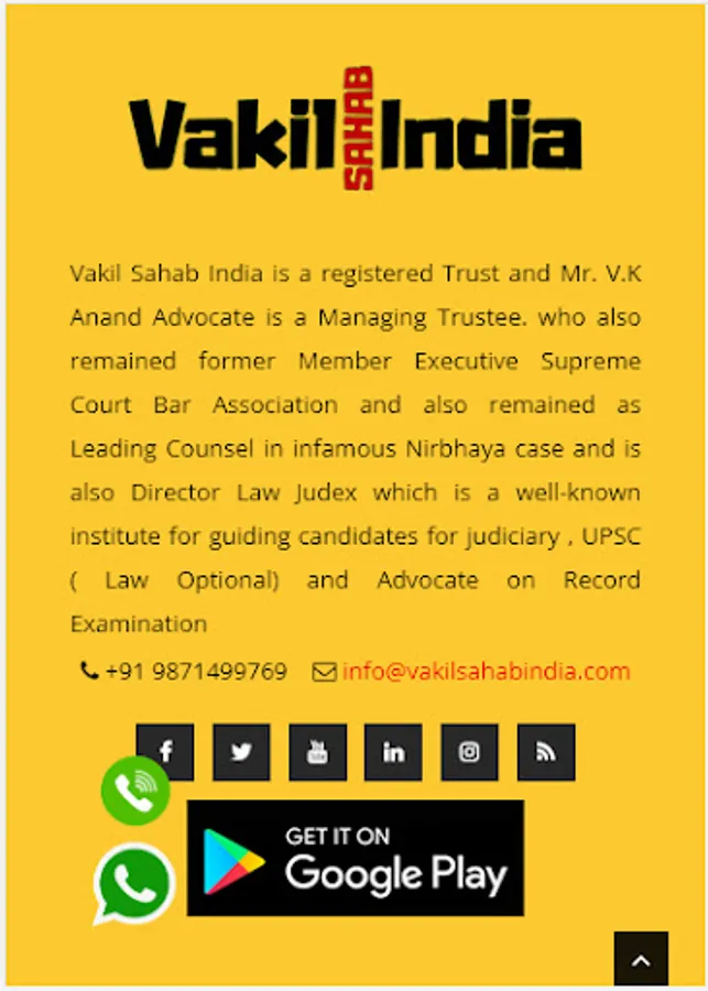 Vakil Sahab India is a digital media news channel and Vakil Sahab India is a registered Trust and Mr. V.K Anand Advocate is a Managing Trustee. who also remained former Member Executive Supreme Court Bar Association and also remained as Leading Counsel in infamous Nirbhaya case and is also Director Law Judex which is a well-known institute for guiding candidates for judiciary , UPSC ( Law Optional) and Advocate on Record Examination