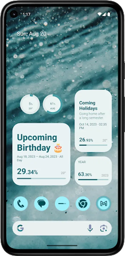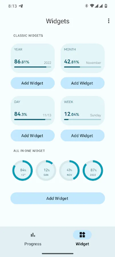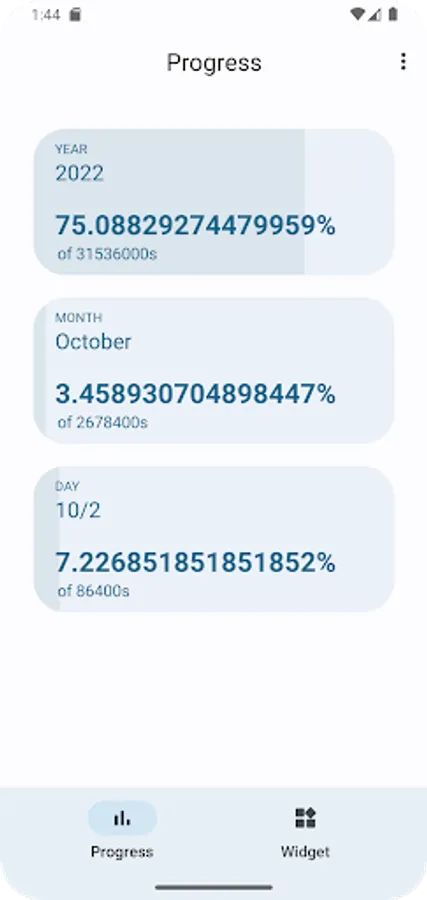 A app using Google's material You design system to provide widget for progress of the day, month and year.