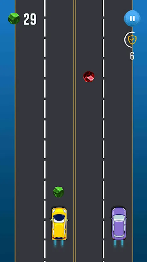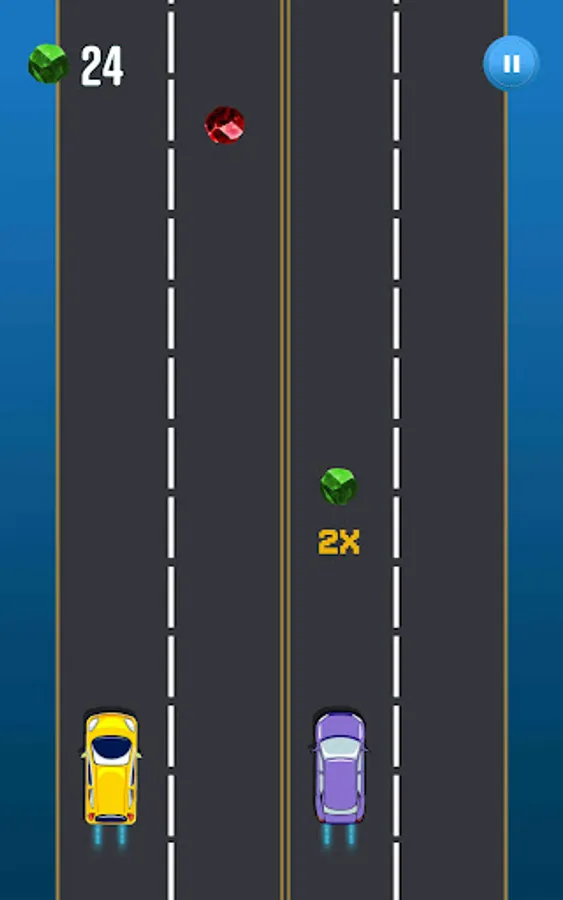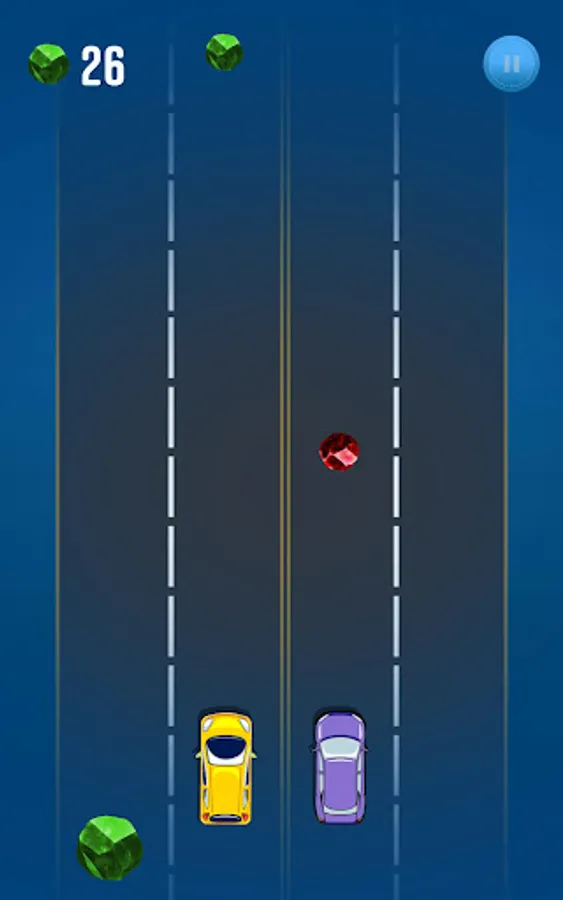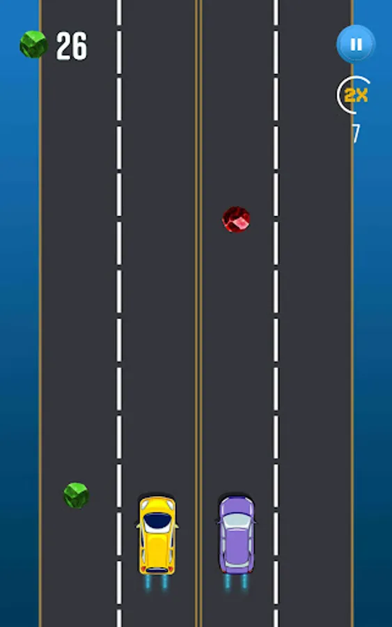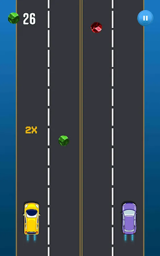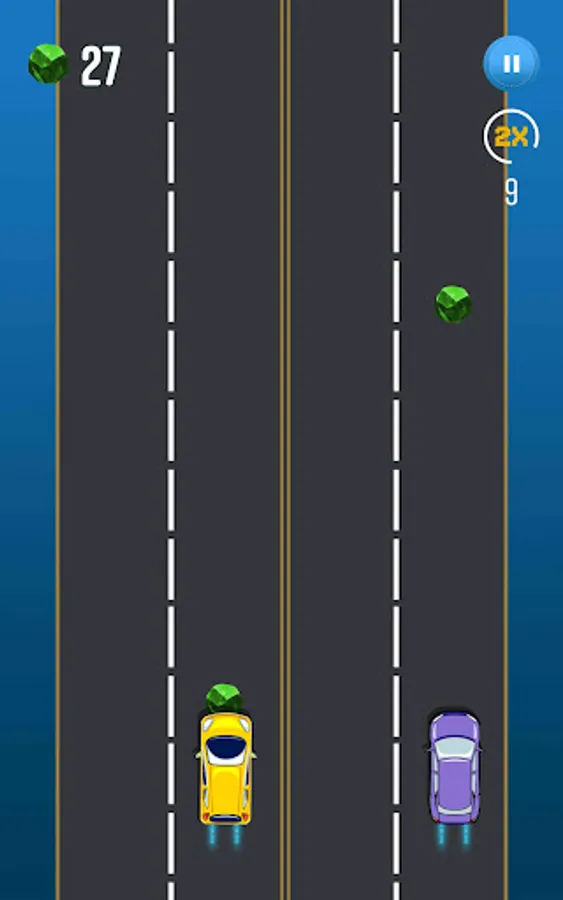 In this game, you will need to manage both cars at the same time, by tapping you can simply change the lane in order to move the car away from colliders. You have to collect green collectibles along the way.
