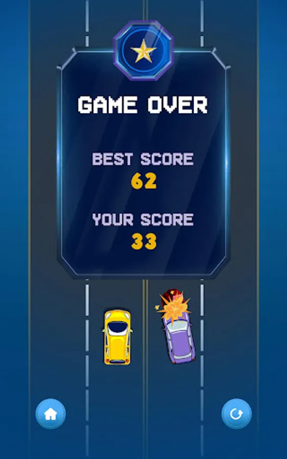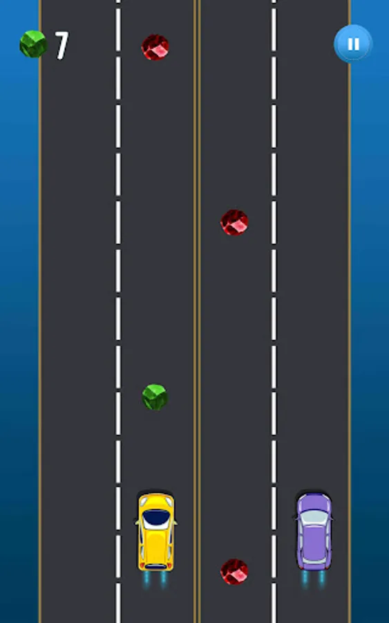 Let's see how well you handle these two smashing cars. This game allows you to have ultimate fun and joy. You can easily tap and change the lane and collect collectibles by avoiding the red colliders.