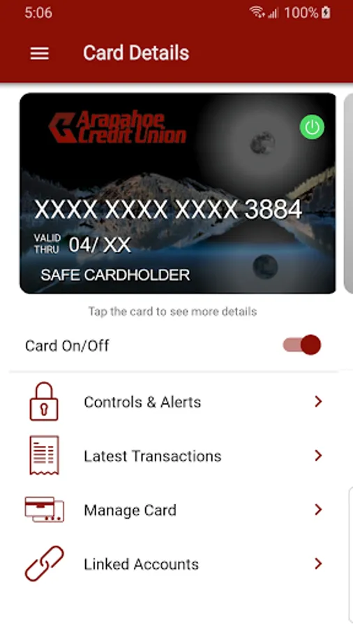 Card Control helps you protect your debit and credit card by sending you transaction alerts and giving you the ability to define when, where and how your cards are used. Simply download to your smart phone, then customize your alert preferences and usage settings to monitor and manage your cards.
