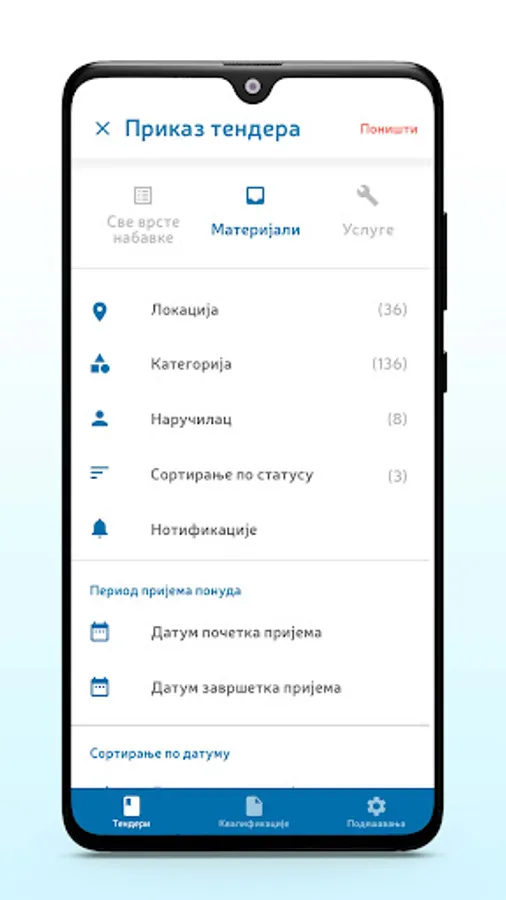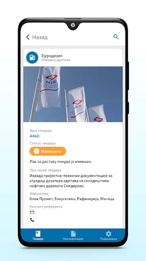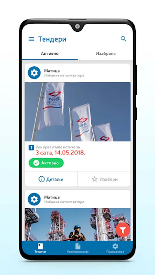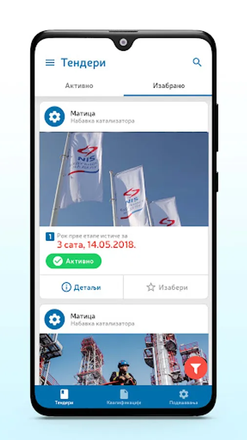 Through the NIS mTenders application, you can follow selected tenders, auctions and qualifications. The goal of this application is to enable every individual to set filters according to his own preferences through settings, and to receive notifications according to the settings.
