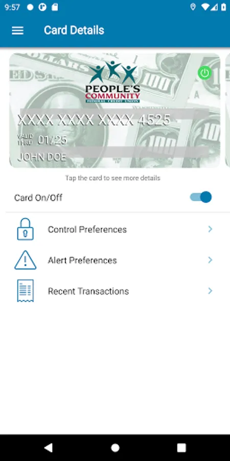 People's CardLock helps protect your debit and credit cards by sending transaction alerts and giving you the ability to define when, where and how your cards are used. You can also turn the card off and on. Simply download the app to your smartphone, then customize your alert preferences and usage settings to monitor and manage your cards.