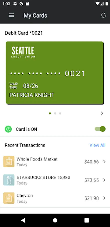 Seattle Credit Union Card Control helps you manage your Seattle Credit Union debit and credit cards by giving you the ability to define when, where and how your cards are used. Card Control works as a companion to the Seattle Credit Union app.