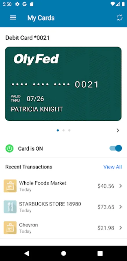 OlyFed Card Control protects your debit cards by sending transaction alerts and enabling you to define when, where and how your cards are used. Download OlyFed Card Control to your smartphone, then set your preferences to monitor and manage your cards.