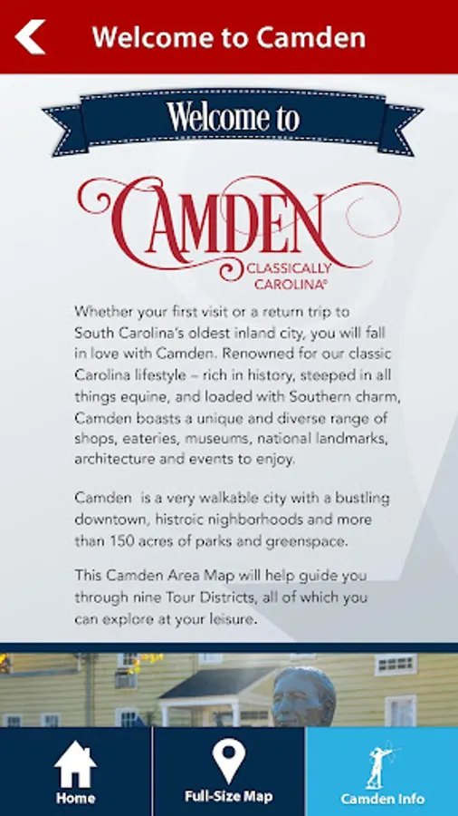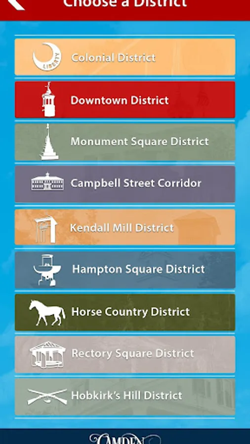 Maximize your Camden, South Carolina experience with The Official Camden Audio Tours app. Act as your own tour guide through the area as you encounter historic markers, homes, cemeteries and more dating back to the Revolutionary War period. Use the interactive map to navigate to every historic marker throughout nine districts.