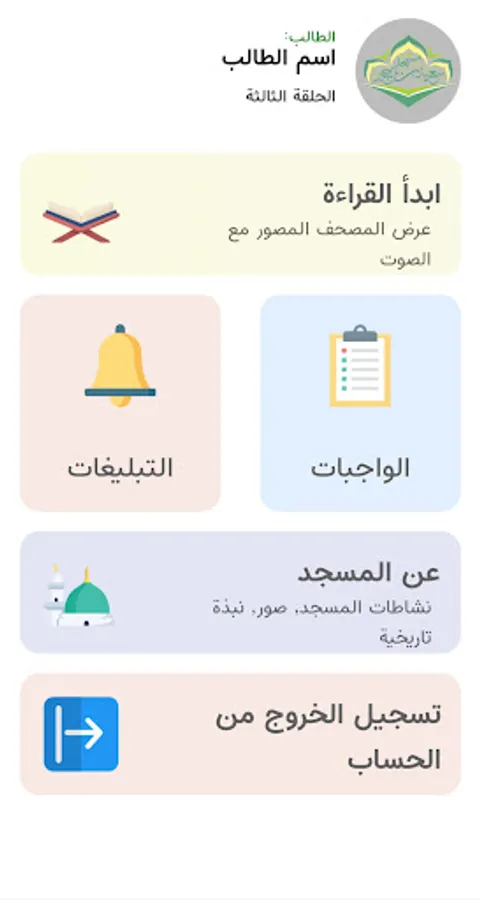 An application to help the students of Saeed bin Jubair Mosque memorize the Qur’an, as well as communicate with the professors and send the voices of recitation to them.