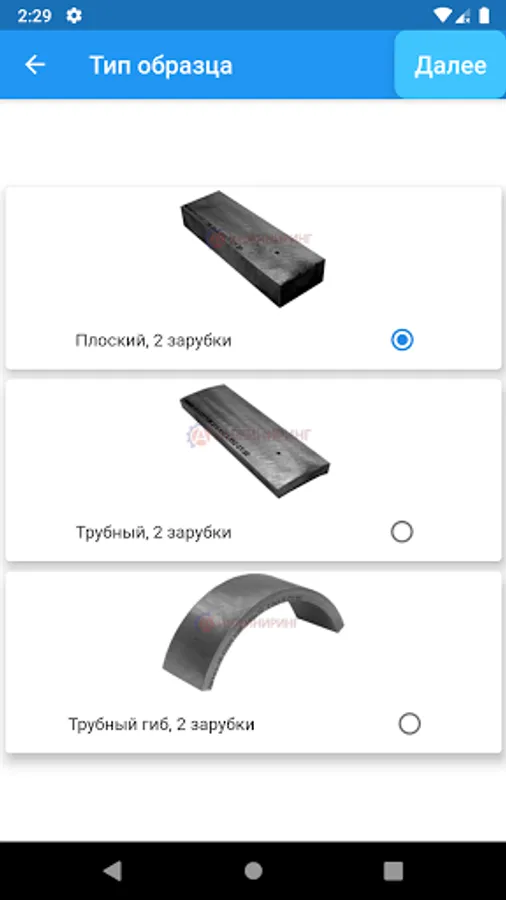 This application implements the selection of the size of artificial reflectors of the "notch" type, depending on the thickness of the sample in accordance with the most common regulatory documents used in ultrasonic inspection. Also, the application implements the functionality for placing an order for an HO of its own production based on data on thickness, material, regulatory document and customer data. In the absence of data on the regulatory document, it is possible to indicate the size of the artificial reflector independently, at the discretion of the user.