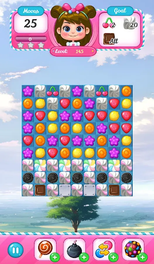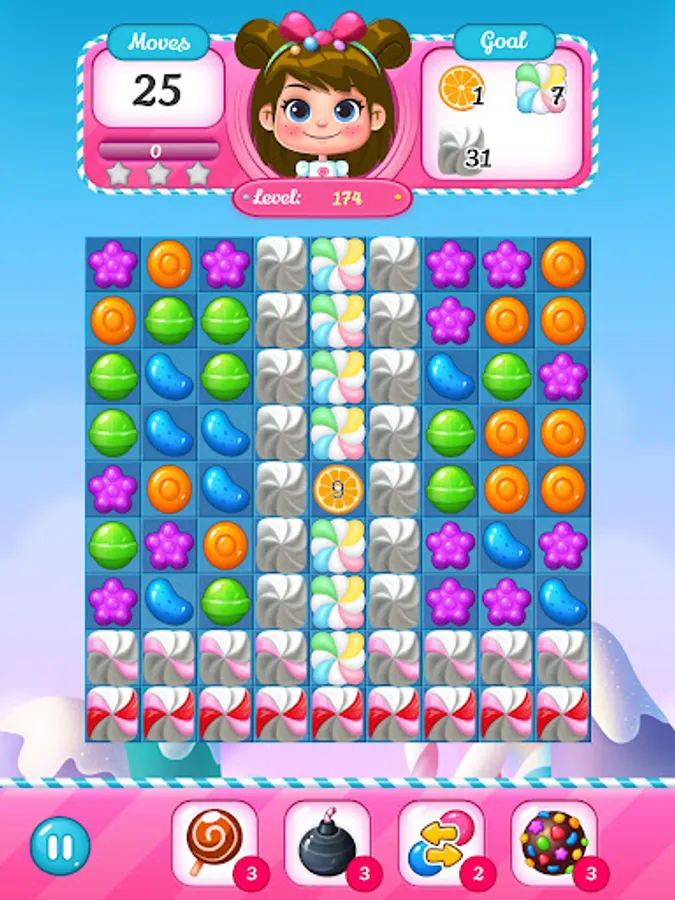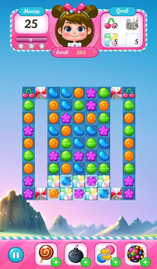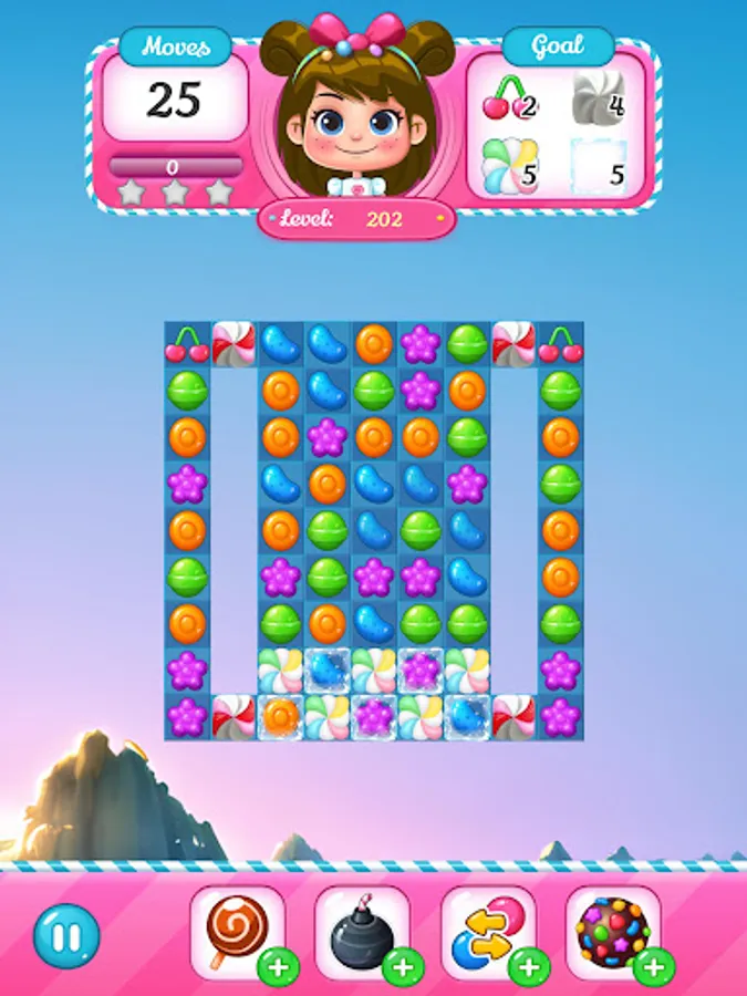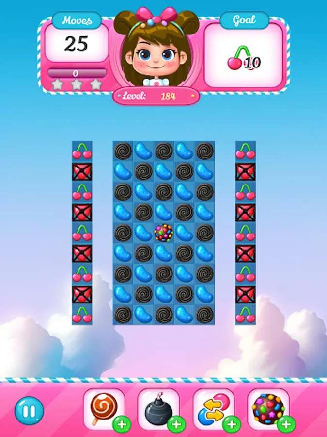 Switch and match Candies in this tasty puzzle game, Travel through the sweet cookie house of candy treats. You will be addicted to these colorful candies 、 cookies and fruits. such as marshmallows, chocolate, licorice, honey, sweets, strawberry, cherry, and so on.