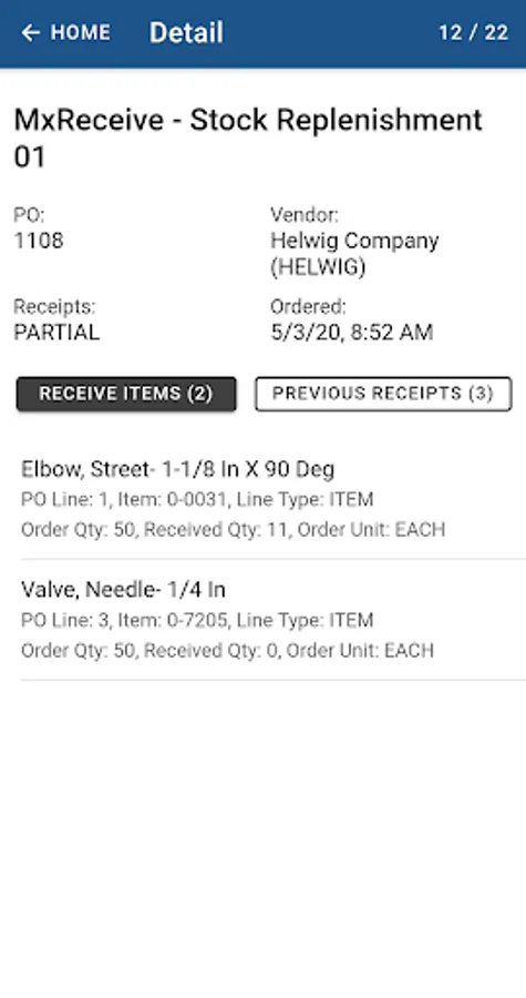 MxReceive by A3J Group, LLC is a mobile application for receiving parts and material from vendors within IBM Maximo Asset Management. Rather than capturing information on paper and transcribing the information into the system on a desktop computer, MxReceive allows users to receive parts and material right at the source. Users can scan item or purchase order barcodes or QR codes to locate records, receive immediate feedback if inspections are required, and receive material in Maximo in real-time from their devices. MxReceive makes receiving parts easy, which builds organizational trust in their data. All on the go, and all using the authorized IBM Maximo API's.