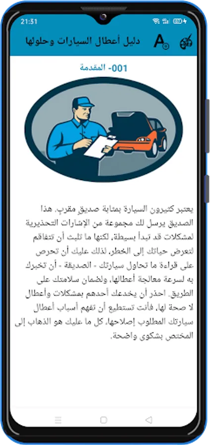 A guide to car malfunctions and their solutions is a wonderful and simple application to get to know closely all the problems and malfunctions that can face your car without the help of a specialist in car mechanics