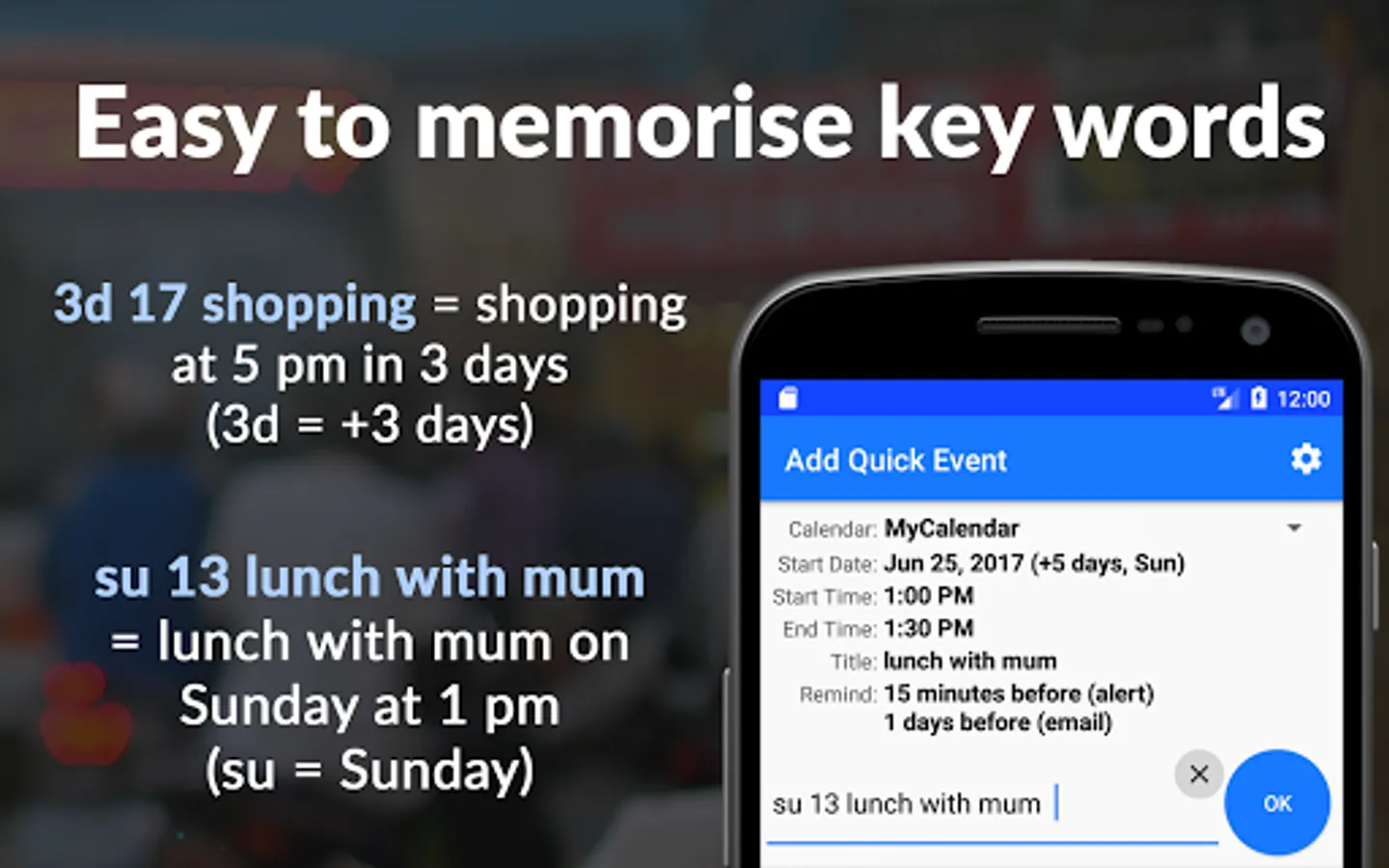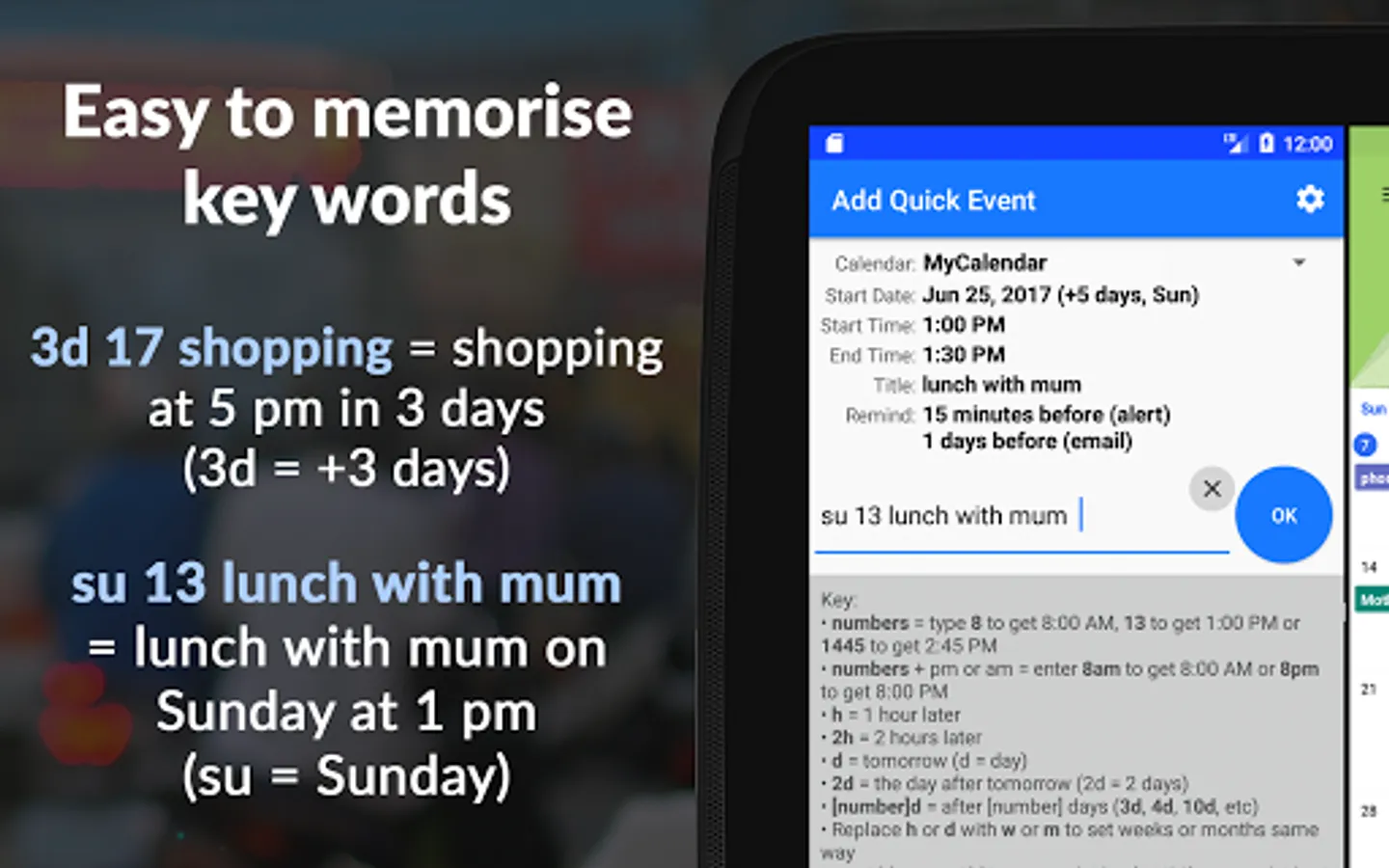 - Do you have lunch with mom next Sunday? Simply type: '2su 13 lunch with mum'