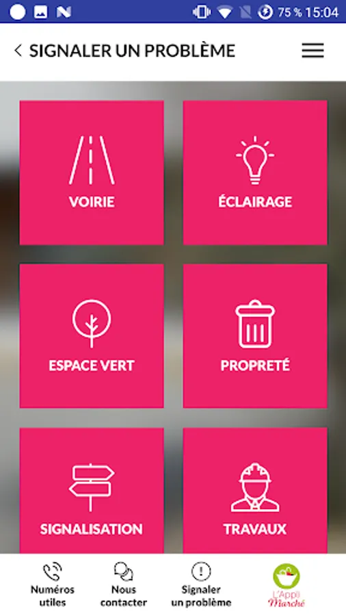 - Report a problem to your town hall by sending geolocated photos: roads, street lighting, green space, cleanliness, signage, work, parking ...