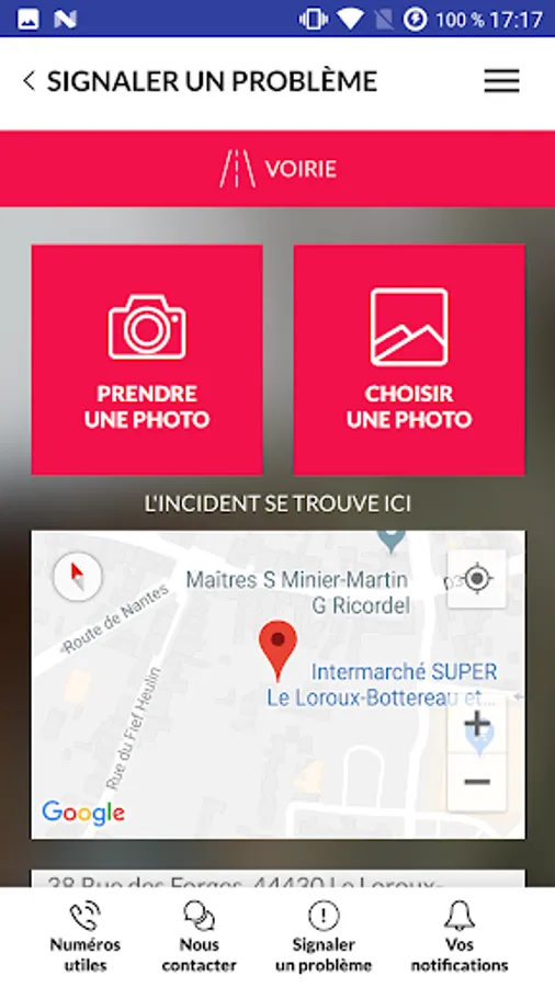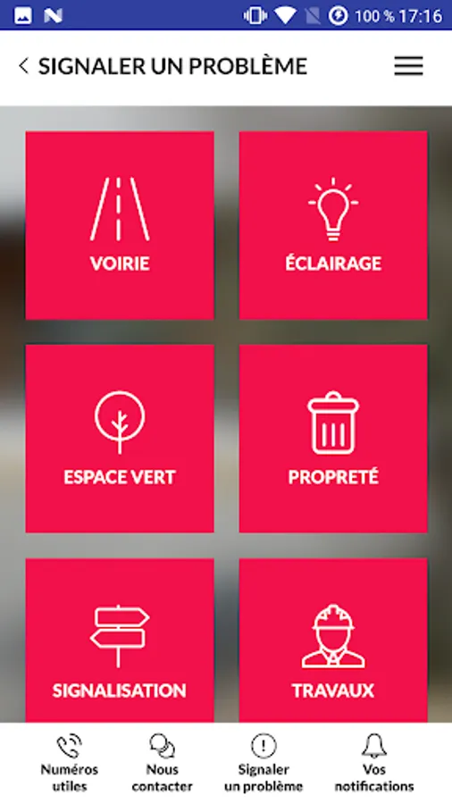 - Report a problem to your town hall by sending geolocated photos: roads, street lighting, green space, cleanliness, signage, work, parking ...