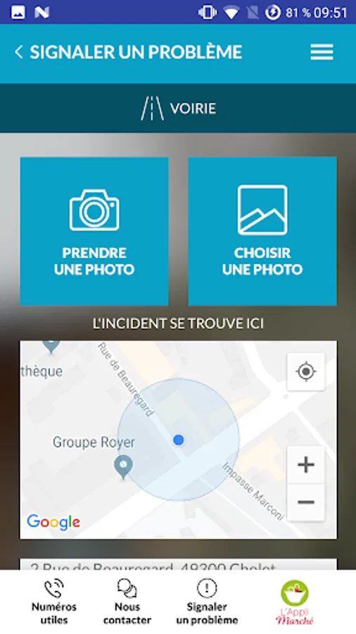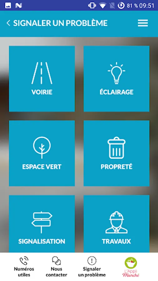 - Report a problem to your town hall by sending geolocated photos: roads, street lighting, green space, cleanliness, signage, work, parking ...