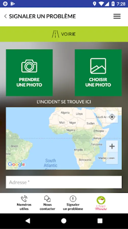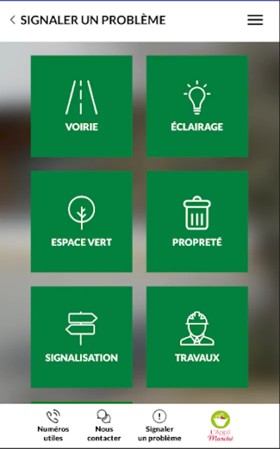 - Report a problem to your town hall by sending geolocated photos: roads, street lighting, green space, cleanliness, signage, work, parking ...