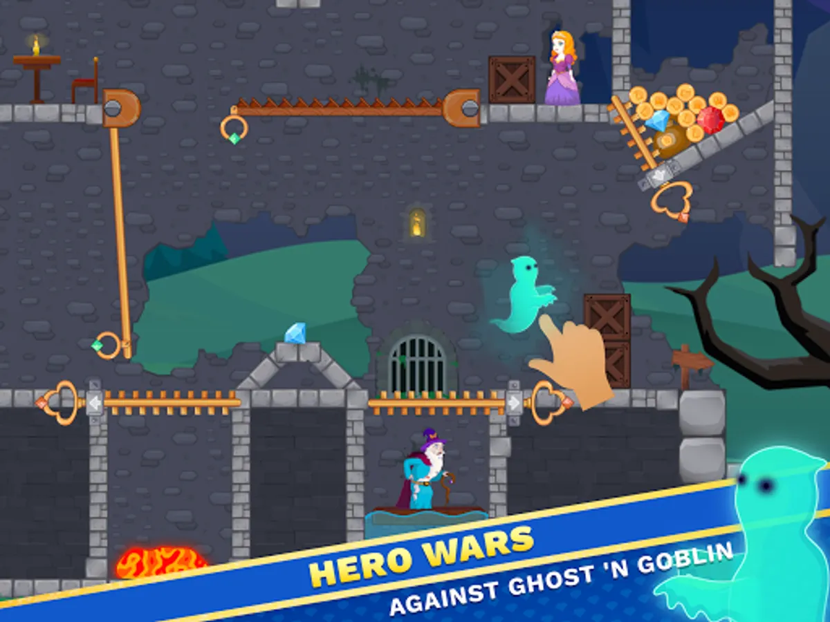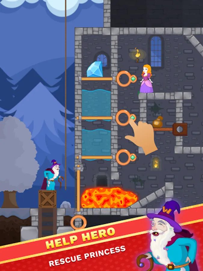 ☆ Be a hero or a heroine. Play as an old mage and pull him out. Or pull pin and help hero rescue princess when she’s in charge!