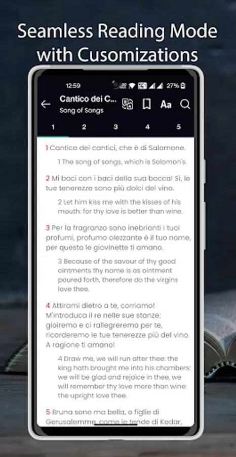La Sacra Bibbia App is a Free offline Italian Bible app that you can use to read The Holy Bible even when there is no internet connection. La Sacra Bibbia is a parallel Bible that you can read in both English and Italian. In this app, you can share Bible Verses in English, Italian, or both in English & Italian with images on social media, or can bookmark/share a bible verse or the whole chapter with notes for future reference. This Italian Bible app uses the KJV version. Italian parallel Bible consists of more features such as :