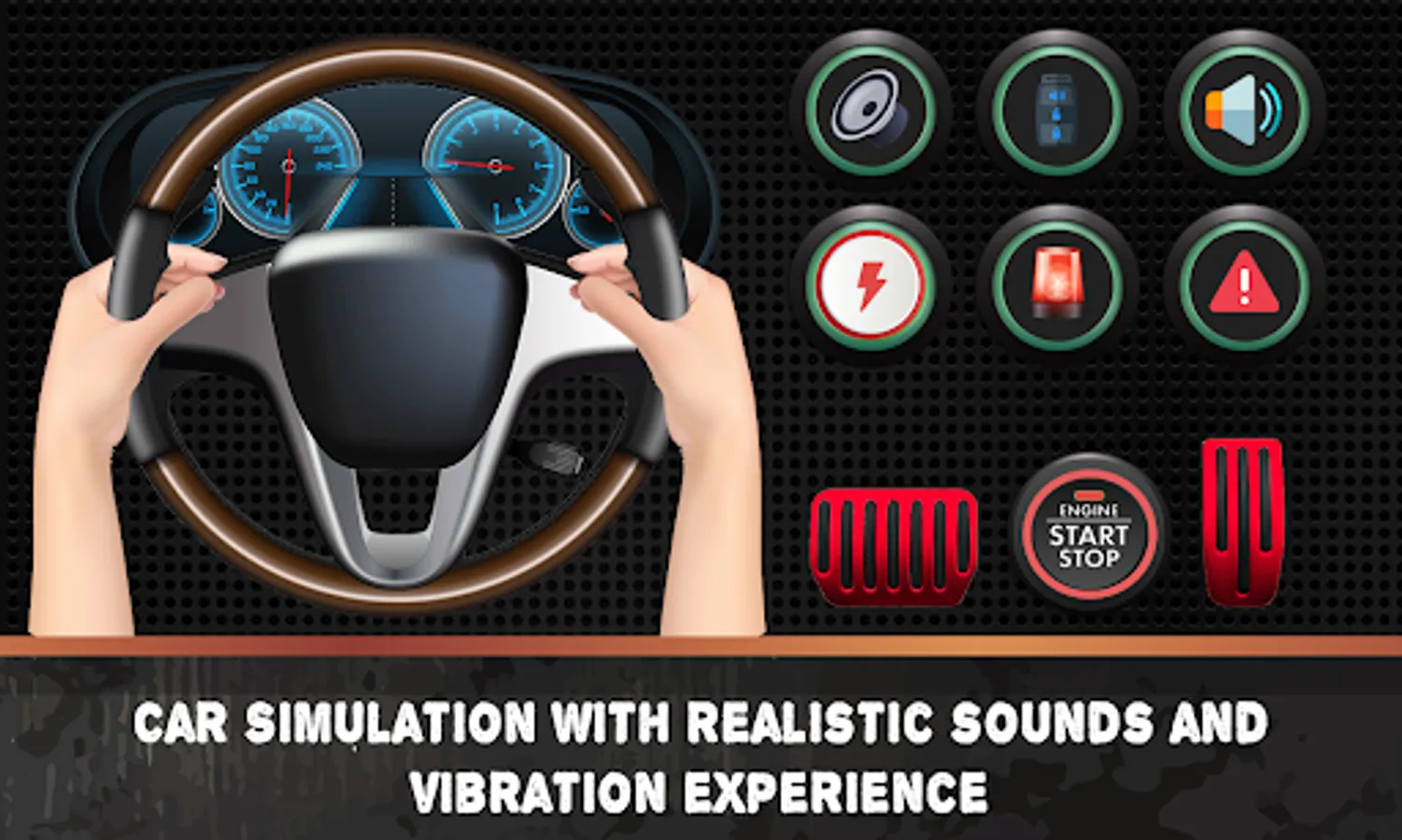 In the Car Simulator Sounds, You may experience the car's horn sound, Emergency siren, steering movement, Headlight, airbags, Car remote key, Engine start/ stop High-quality sound With its animations, it has high-quality sound. It feels like you're driving a car.