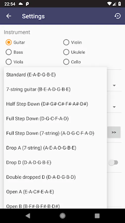 The tuner has been tested with many guitars, violins, basses, ukuleles, violas, cellos and banjos, and we constantly grow our test coverage with new recordings of the instruments. You can switch between the guitar and the violin tuning in the settings.