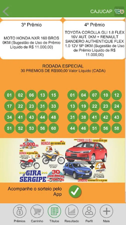 Now it's easier to get your Cajucap Capitalization Bond! With this app you can buy your Capitalization Bond to help GACC Sergipe and compete for the week's prizes. Also, here you can check the full result of all editions. Download now for free!