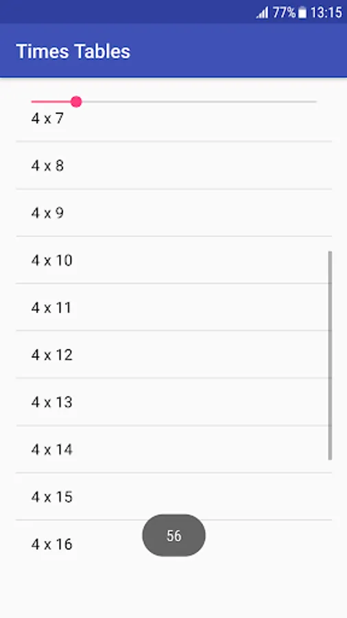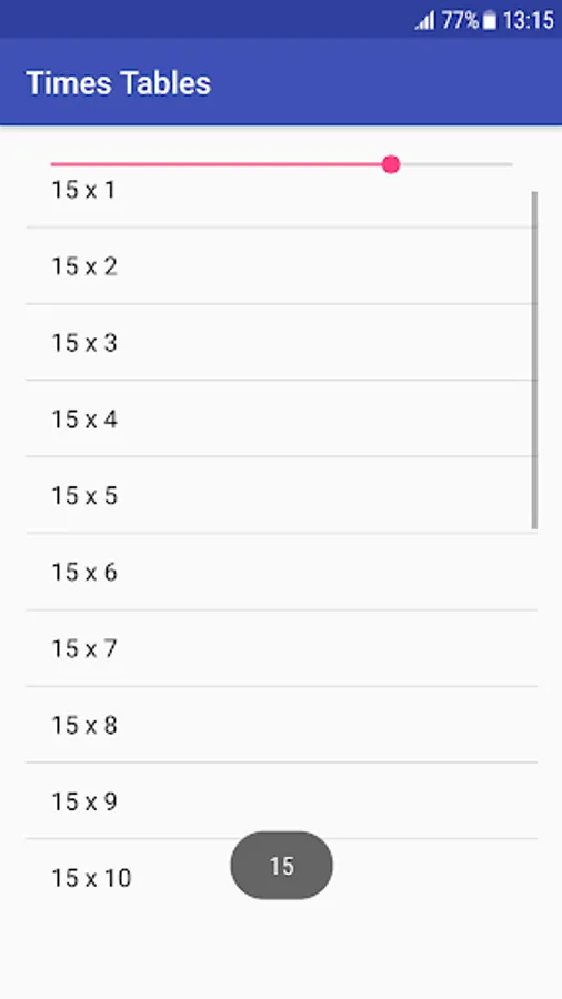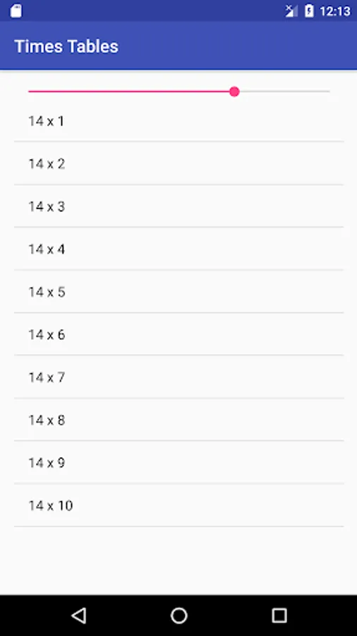 Just slide through the tables with the slider at the top, and tap to see the answer of any of the multiplications.