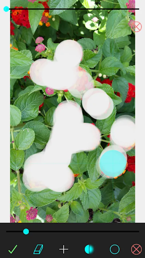 *Eraser allows you to control size, blur, and shape as you trim away to allow the background image to show through. This allows some extremely complex editing only seen in full fledged desktop editing.