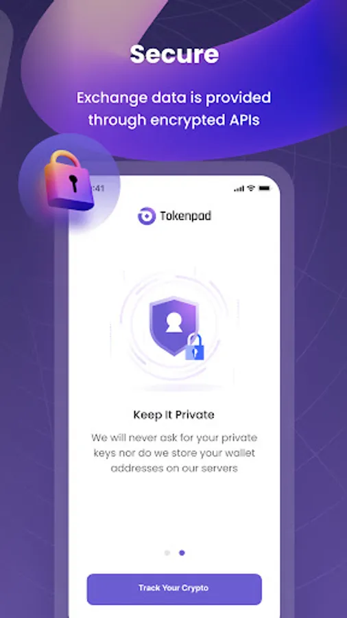 Tokenpad only needs your public address to get started and that data is all stored locally on your phone. Exchange data is provided through encrypted APIs so all requests sent are secure.